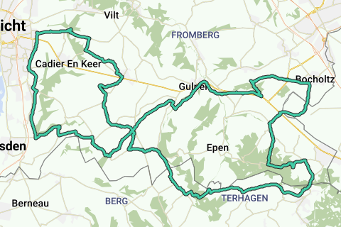 Rondrit Heuveland 59 vanuit Slenaken. Start/ finish: grote parkeerplaats voet Loorberg Slenaken. Beklimmingen: Kasteelstraat Teuven (B) 1.200 m., max. 10,0%. Chemin du Duc Gemmenich (B) 1.200 m., max. 12,0%. Camerig oost Vaals 2.800 m., max. 12,%. Lemiersberg (Kühlweg) Lemiers (D) 1.600 m., max. 8,0%. Oude Luikerweg Reijmerstok 2.400 m., max. 5,0%. Rondelenstraat Mheer 1.200 m., max. 8,0%. Noorbeekerweg Mheer 800 m., max. 8,0%. Bergenhuizen Noorbeek 600 m., max. 10,0%. Waufsberg Noorbeek 1.800 m., max. 12,0%. Hoogtemeters: 989. Koffiestop: De Bresserie, Dalestraat 5, Banholt (di/wo gesloten).