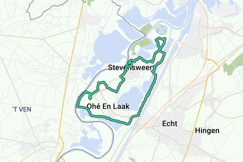 Dit is een wandeling van 17km die start in Stevensweert en gaat vervolgens door diverse mooie natuurgebieden en langs diverse wateren om vervolgens in Ohé en Laak aan te komen waar u bijvoorbeeld de Ruine van Kasteel Walborg kunt beoeken. Hierna gaat de tocht weer verder, via de Hompesche Molen komt u weer terug bij het begin punt in het centrum van Stevensweert.