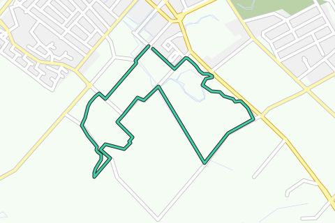 Afstand 5,6 km. Gemarkeerd met groene paaltjes