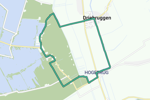 langs Dubbele Wiericke van Driebruggen naar Hogebrug, via Hoeve Stein, Oukoop en Kippenkade naar Enkele Wiericke, en via Wierickewachter met Aalscholvers terug naar Driebruggen