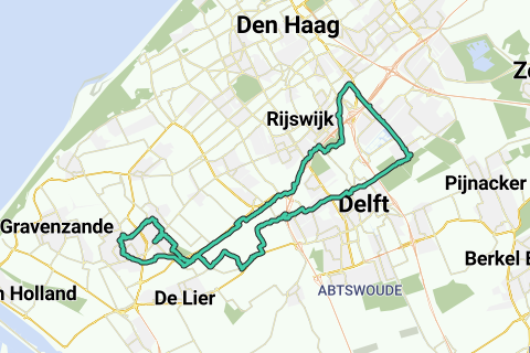 "Rondje Naaldwijk - Delft - Naaldwijk". Een bijna geheel vlakke route een paar verkeers oversteken noodzaken tot een klim maar daardoor is de oversteek wel veilig. De route voert over het algemeen door een mooie omgeving. Op 4 km rij je langs het eeuwen ooude natuurgebied 'de 7 gaten' in de Lier. Door 'oud Delft' kom je weer terug in het landelijke midden Delfland en Westland. onderweg zijn voldoende bankjes om de lunch en het meegebrachte drinken te nuttigen. Natuurlijk kom je ook horeca tegen. ( op 9 - 21 - 32 km en in Naaldwijk zelf vlak voor het einde na de kerkring is in het cenrum voldoende gelegenheid voor een hap en een sap )