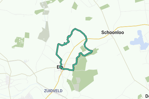 De start is bij hotel restaurant café Koekoekshof in Elp. Ga vanaf de parkeerplaats naar rechts. Vervolgens de derde afslag linksaf : Schapendrift. Bij de driesprong van wegen gaat u LA: Oelmersweg. U gaat daarna RA een onverharde weg in. U loopt dit pad rechtdoor het bos in. U neemt de eerste afslag RA. Dan neemt u het eerste pad LA, met verbodsborden. Vervolgens op een viersprong van paden RA. Het pad maakt een haakse bocht naar links. U komt uit op een T-spltsing. Hier gaat u het brede pad LA en maakt verderop een buiging naar rechts.( Hier is de route ontregeld door boskap. Gaat u daarom rechtdoor over het gekapte gedeelte tot op het verharde fietspad. Hier LA over het fietspad. U gaat bij het bospad aan de rechterkant met het bruine bord RA.) Het pad gaat een zandverstuiving voorbij en u loopt door tot aan de verharde weg. Op de verharde weg, met naastliggend fietspad, gaat u een klein stukje rechts en slaat dan linksaf een bospad in. Het pad gaat tussen twee plassen water door. Na de rechter plas gaat u rechtdoor over een klein bospad. U komt op een viersprong. Hier gaat U RA over een breed pad. U vervolgt het pad rechtdoor over de keistenen weg. Bij paddenstoel 23165 gaat U rechtdoor. Bij paddenstoel 23164 steekt U de weg over en gaat rechtdoor. Ga het kruispunt met een onverharde weg voorbij. U komt bij een driesprong met paddenstoel 23163. Hier gaat U RA door het klaphekje. Het paadje loopt naast een water. Bij het bruggetje gaat U RA en meteen weer LA. Op de driesprong gaat U vervolgens RA. Daarna op de T-splitsing LA. Bij de Y-splitsing links aanhouden. Op de volgende driesprong rechtdoor. Op de verharde weg links aanhouden (rechtdoor) : Oosterlangen. Bij het kruispunt met zandwegen LA. Op de volgende kruising met een verharde weg RA. Bij het dorp de grote weg oversteken en rechtdoor. In het dorp op de driesprong RA. Op de volgende driesprong LA (paddenstoel 22481). Hierna komt U terug bij het begin.