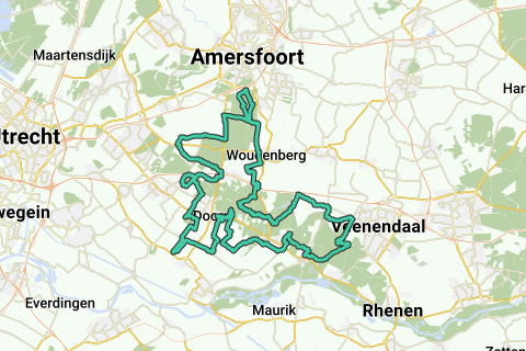 Vanuit vakantiepark Het Grote Bos, fiets je langs zandverstuivingen, en vervolgens langs het Maarnse Gat. De route gaat naar dorp Austerlitz en over de vele gravelfietspaden door Landgoed Den Treek. Via een gravelweg langs de Woudenbergse Grift, fiets je richting Maarsbergen. Je gaat door de Landgoed Maarsbergen en beklimt de Ruiterberg, en daarna volg je het Let de Stigterpad (een begrip onder gravelaars op de Utrechtse Heuvelrug). Vervolgens ga je gravelend door het Leersumse Veld (heidegebied). Via deels gravelfietspaden in de buurt van Veenendaal, ondermeer langs het Egelmeer, ga je terug richting Amerongen en dwars door Amerongen: je komt langs wielercafé De Proloog.