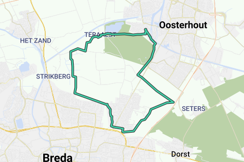 Lgs de golfbaan, tot in Breda, via Teteringen en Cadettenkamp terug.