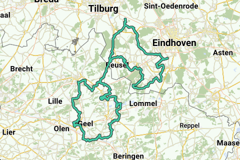 Een route ontstaan uit 2 kortere routes te vinden op RouteYou maar vertrekkend van ons vakantiehuisje in Moergestel.