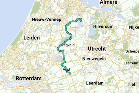 Deze route is uitgezet in het Groene Hart. De route loopt door het landschap van de laagveenontginningen in West-Nederland.