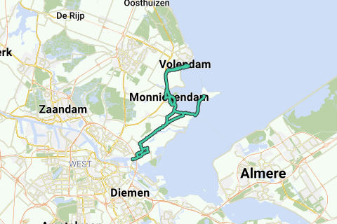 fietsroute van schellingwoude naar marken,volendam en terug naar schellingwoude.