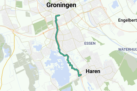 Lijn 22 naar P&R, door tunneltje en langs het Paterswoldse meer naar Groningen.