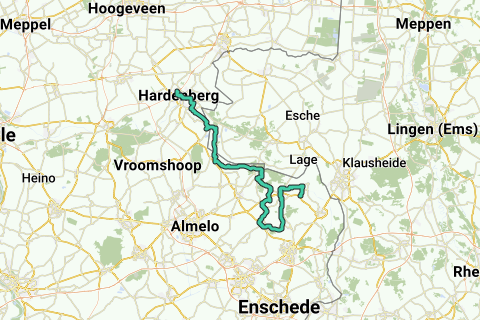 Route van Hardenberg naar Tilligte, via o.a. Weerselo, Ootmarsum, Vasse, Reutum