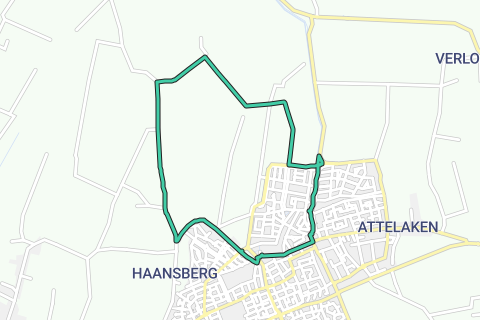 u vervolgt de haansberg en komt in de dorpskern weer uit.hier gaat u links Sander op. dan kunt u links de baai op en steekt de weg over aan de linker kant vind u een skate/voetbal parkje u blijft de weg volgen en komt dan in het hart van de Leur op het van bergenplein.