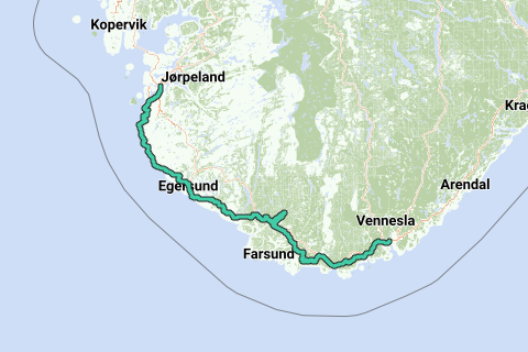 <p><a class="routeYou_embed" href="https://app.routeyou.com/nl-no/route/view/12191522?utm_source=embed&utm_medium=article&utm_campaign=routeshare&navigation=external" title="Stavanger - Kristiansand - RouteYou" target="_blank"><img src="https://image.routeyou.com/embed/route/960x670/12191522-nl@2x.png" style="width: 100%; height: auto;" alt="Stavanger - Kristiansand"></a></p>