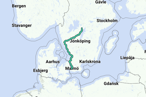 Route van Malmo brug naar GBG naar Tibro naar Undenas mooie route