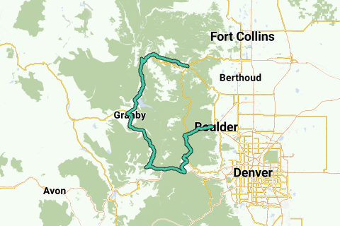 De motorroute leidt je vanaf de rand van het Nationaal Park, bij Estes Park, door het Nationaal Park, naar Boulder. Je passeert het hotel dat de inspiratie vormde voor de film 'The Shining', je krijgt de Flat Irons en de Great Divide te zien.