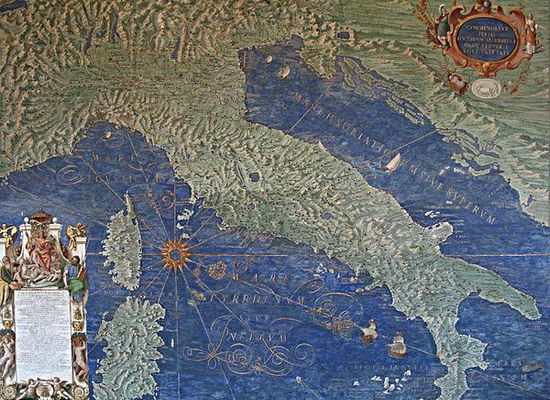 De Kaartengalerij draagt zijn naam vanwege de topografische kaarten van alle gebieden van Italië en zelfs twee kaarten van Italië zelf, die op de muren en plafonds geschilderd zijn door Ignazio Danti in opdracht van Paus Gregorius XIII.