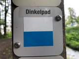 Gemarkeerde wandelroute, met kaart en tekst beschreven in de wandelgids ‘Reggepad en Dinkelpad’. Het wandelpad is in twee richtingen gemarkeerd met een wit-blauw blokje of pijl met de tekst ‘Dinkelpad’. De markering is met stickers uitgevoerd en grotendeels aangebracht op palen van het Wandelnetwerk Twente. Het pad is bij het Lutterzand en op landgoed Singraven niet gemarkeerd (dit gaat wel gebeuren in 2021). Bron: oppad.nl
