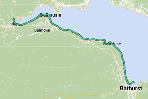 1090100 9van12 NB - 01 Pointe-à-la-Croix, QC naar Bathurst, NB (Bathurst Marina Inc. Camping) 119km